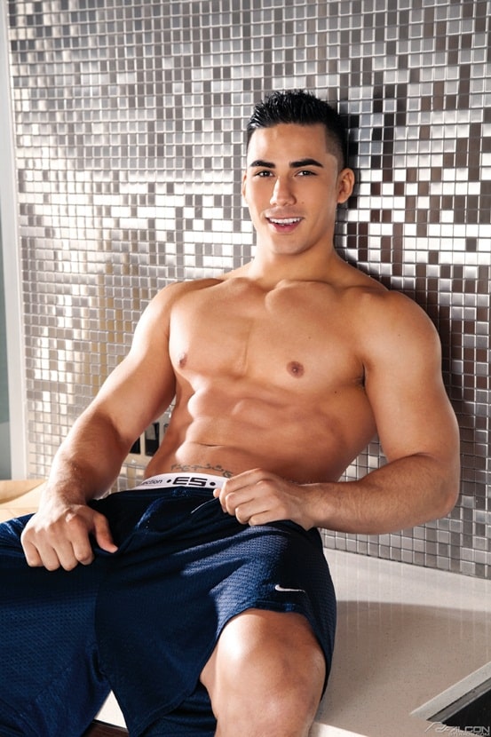 Falcon Studios says: Topher DiMaggio is finishing rinsing some dishes when his man Angelo Marconi walks in. These hot Latin lovers can’t keep their hands off each other. Who could if they were coupled with either of these dark-skinned, passionate men.