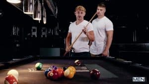 It’s the first time that coworkers Jackson Cooks and Malik Delgaty have been hanging out outside of work, and as they play some darts, Jackson uses the opportunity to get close to Malik as much as he’s able to. Malik is looking at the shorter guy’s genitals while Jackson breaks the pool table. However, Jackson cannot resist the urge to touch Malik’s genitals, which can make his next shot a mess. Malik decides that Jackson requires a lesson. He teaches him on the table and flips him over to punch him in the face. Jackson wants more, getting to all fours for Malik to rough him up on the green felt, before bouncing on that big cock until he cumming. Malik informs Jackson they’re not finished yet. He gives him every inch of his back, before cumming on Jackson’s face.